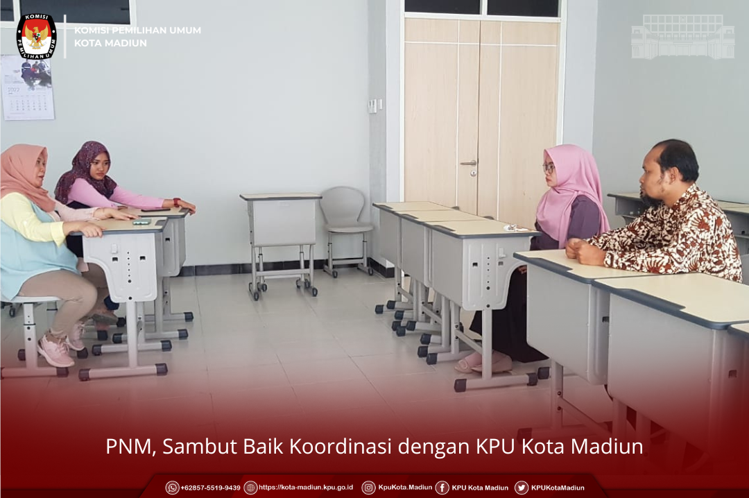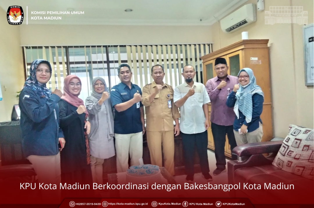 Diterima langsung oleh Kepala Bakesbangpol Kota Madiun, Tjatoer Wahjoedianto menyambut baik kedatangan rombongan dari KPU Kota Madiun yang terdiri dari Rokhani Hidayat (Divisi Sosdiklih, Parmas & SDM), Pita Anjarsari (Divisi Hukum & Pengawasan), Izza Kustiarti (Divisi Rendatin), Herdi Widjanarko (Divisi Teknis Penyelenggaraan Pemilu), Titus Saptadi (Sekretaris), Nurwidyarini DP (Kasubbag. Rendatin), Nur Hansah (Kasubbag. Hukum & SDM).